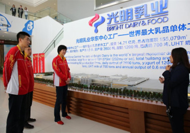 让女排团队一行(郎平、安家杰、包壮)探访光明乳业在马桥的华东中心工厂,