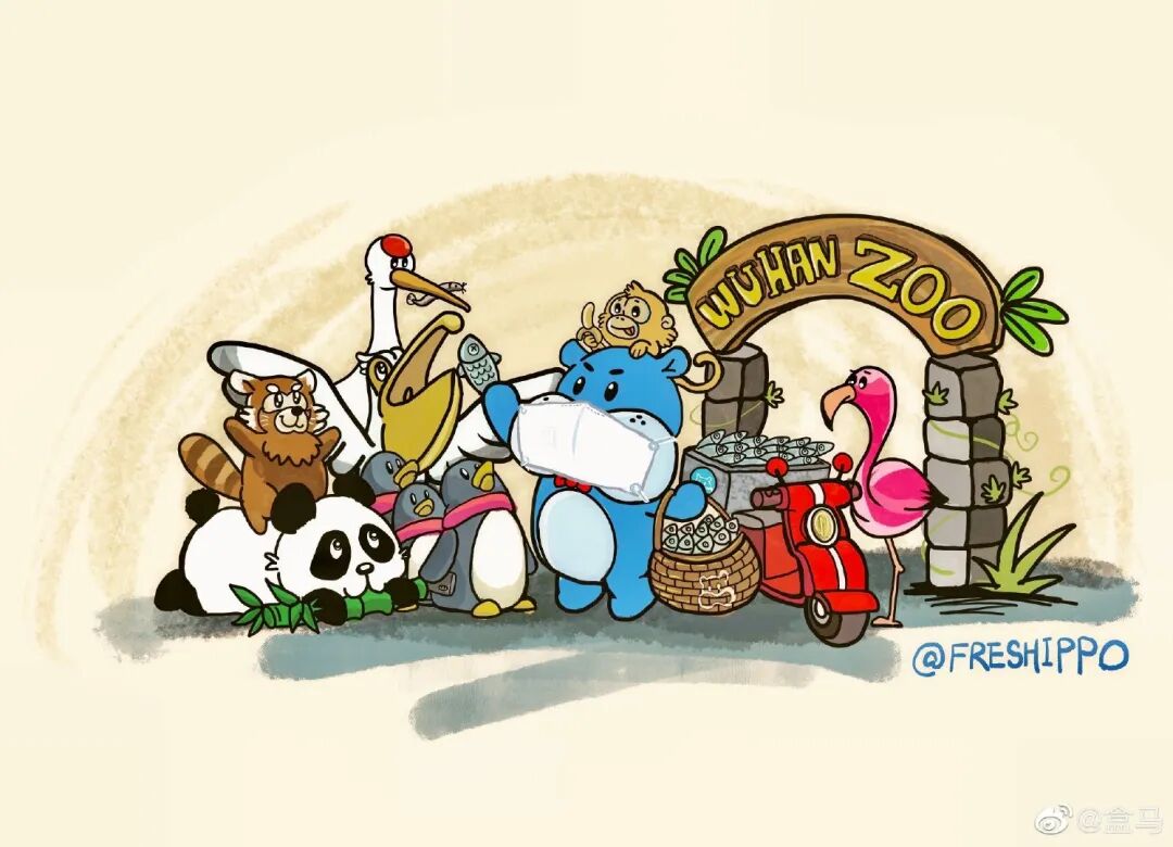 2月1日,武汉动物园在微博向社会求助供给动物的物资,表示动物园的水产品即将用尽,因此恳请社会各界支援,以保障动物们的正常生活。盒马随后表示将会做出支援,为动物们提供食物。同时通过高晓松微博透露,盒马已决定认养武汉动物园内的两只河马。